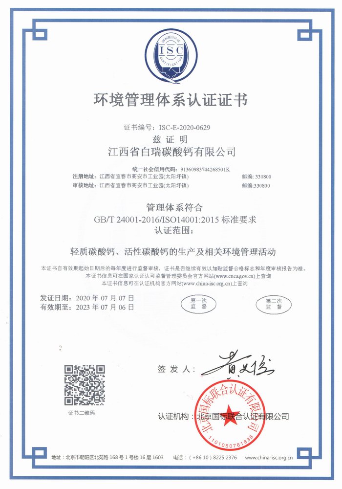 ISO14001环境管理体系认证证书(白瑞)